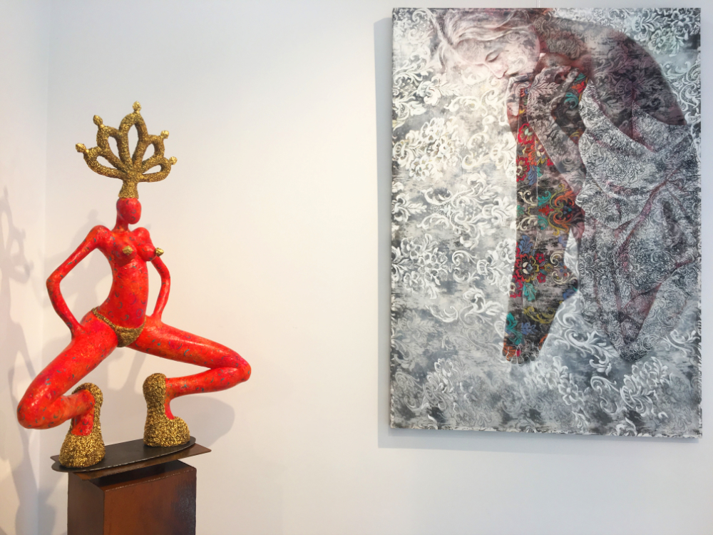 marmer, bladgoud, bronscoating, 94 x 68 x 25