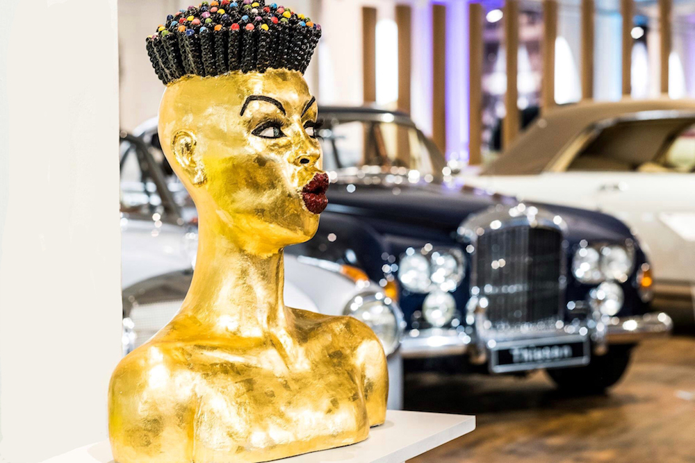 marmer, bladgoud, bronscoating, 94 x 68 x 25